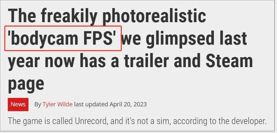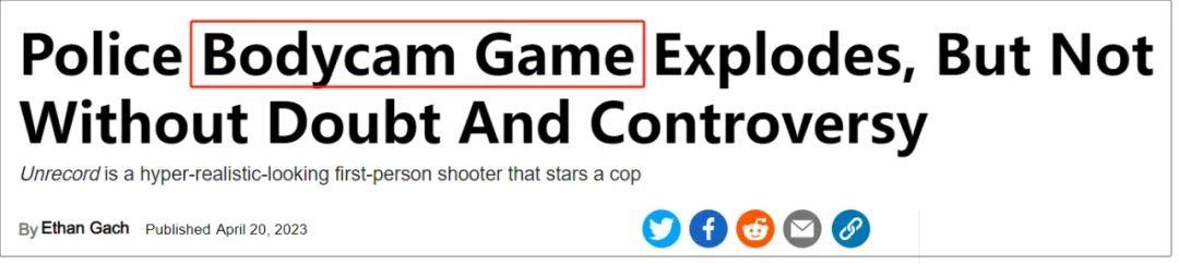 更鸡贼的一个疑点是:当时《Unrecord》在海外引发了全社会向的各种热议,包括其模仿美国警察执法录像的画面风格,会不会让游戏引发更多暴力。而在这些出圈的讨论中,许多主流媒体都没有用《Unrecord》在标题里称呼这款游戏,而是直接将其称为“Bodycam FPS(穿戴式摄像机第一人称射击游戏)”。
