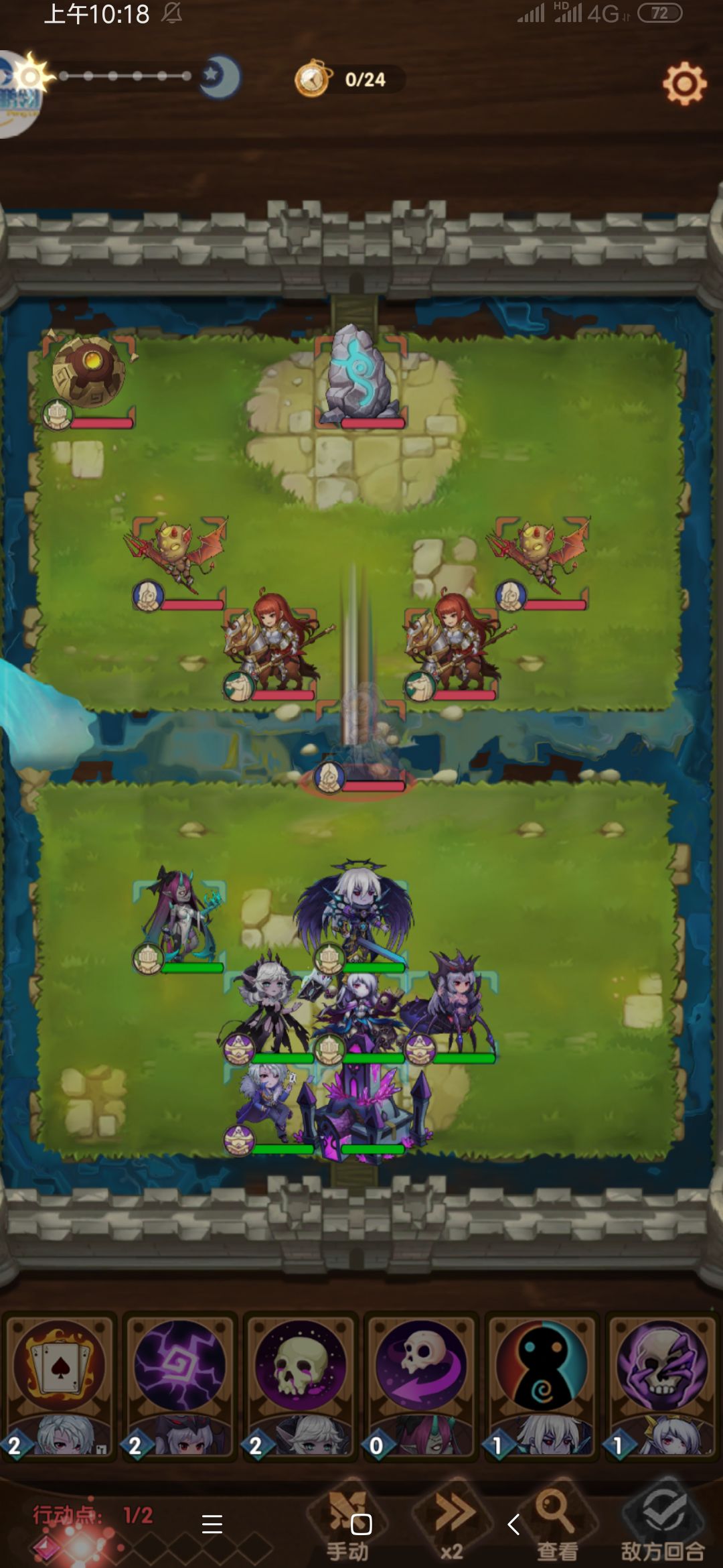 玩法:三战士保证血量不被秒不被践踏,主角和女妖带恶魔纹章转攻击必中词条