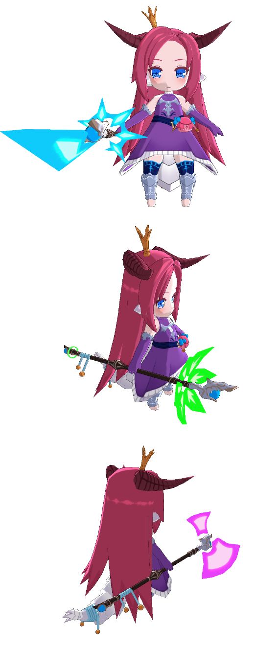 共有3种形态,大斧【物理输出型】,长枪【均衡型】,长杖【法术输出型】三种