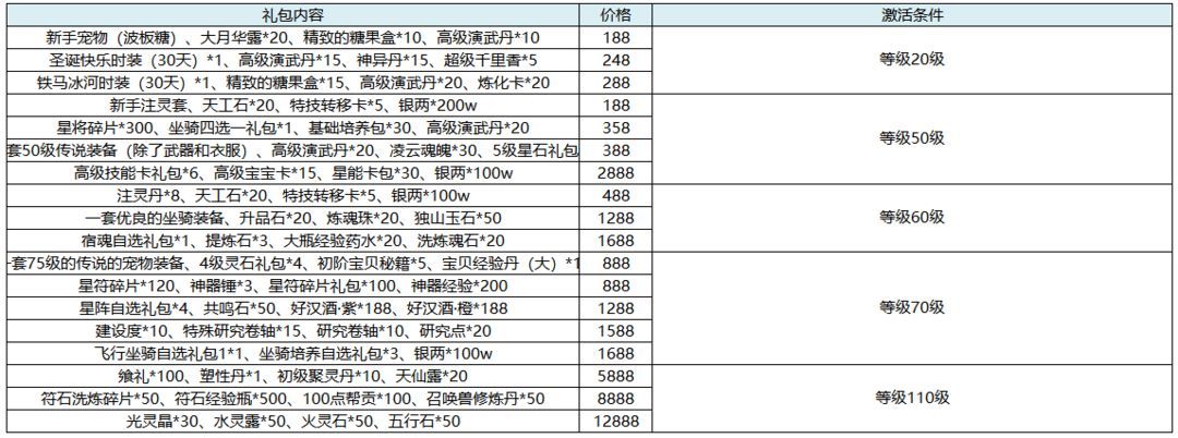 活动三:等级礼包助成长活动内容:新服期间,水粉们每升十级即可领取等级大礼包一份,福利多多助你成长。