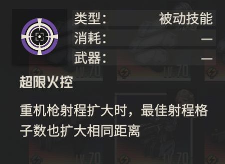 重机枪机师大多数具有扩大重机枪射程的能力,这样会带来什么改变,相较于射程提升之前,虽然可以攻击到远处的敌人,但是无法处于最佳射程下对敌人进行输出,伤害并不可观。如果最佳射程扩大相同距离的话,就意味在多数情况下,对远处的敌人进行攻击时,也能享受到最佳射程带来的增益。并且最额外的最佳射程是叠加而不是取代,不会损失原本的最佳射程,同时对于主动扩大射程的威廉生效,被动扩大射程的艾米莉同样生效
