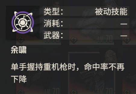 重机枪通用技能,一边手臂被破坏时,维持命中率不下降。