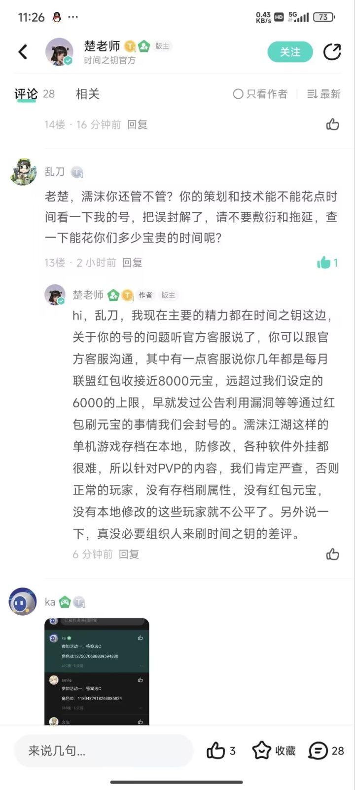 根据前不久乱刀的封号事件,老楚又给出了新的解释,帮派元宝超过6000,装备+12回档刷的小伙伴们注意了,看管好自己的账号,没准哪天就登录不上去了。不止如此,我推测还有回档刷副本材料,回档打帮派副本等等,大家都危险了!!!