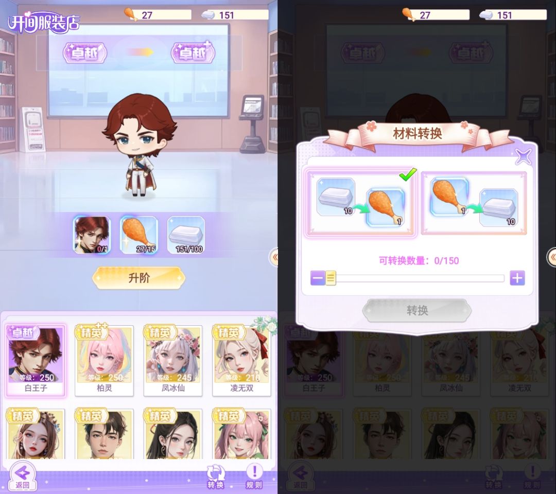当店员们成功升阶后,他们将焕发出全新的光彩!更高的资质、更炫的百分比闪耀值,让他们在游戏中如鱼得水、势不可挡!让店员们获得更高的闪耀值、可玩性十足。