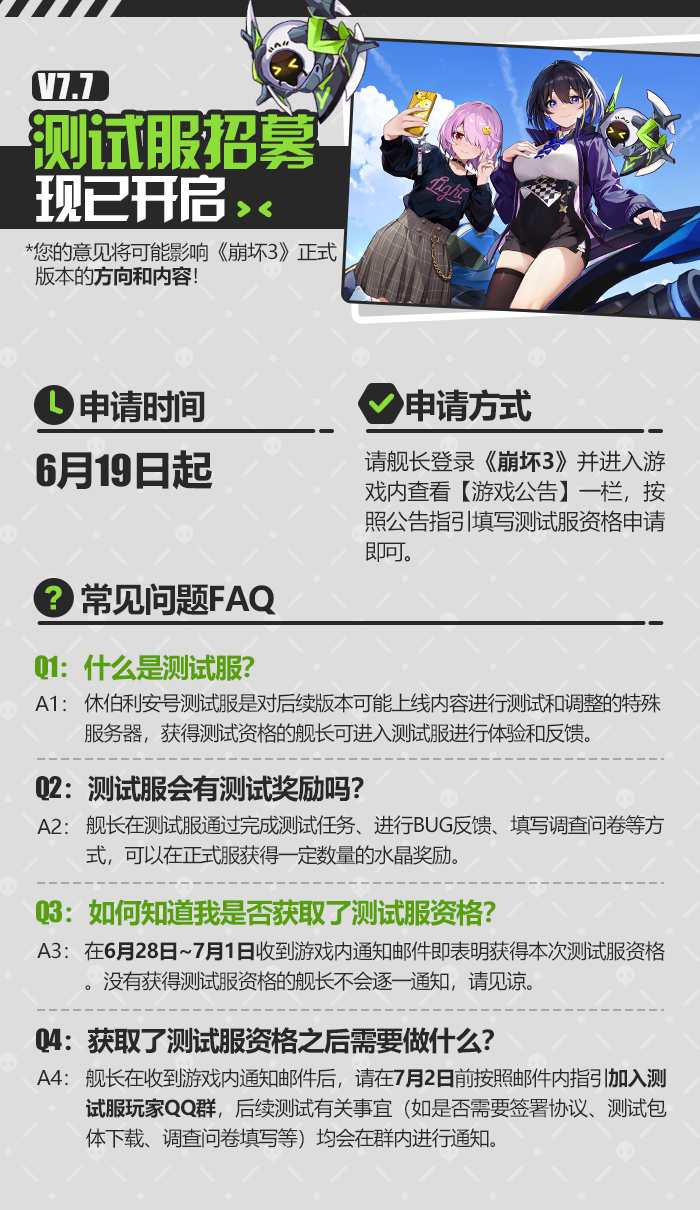 舰长好,V7.7测试服招募现已开启,请有意愿参加测试服的舰长不要错过。具体申请方式马克兔已为舰长在图中注明,请舰长于下方长图中查看本次测试服舰长招募详情。