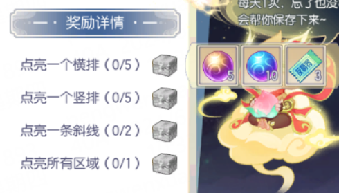 每拼完一张图都能获得奖励,拼完全部拼图更有额外奖励哦!届时可以兑换碎片、丹魂、丹魄、奇谭残页、高级羽化翎、高级聚星丹、超级书福袋、高级书福袋、紫色魂器福袋、桃花铃灵器、玉兔灵器、金色魂器福袋等等丰厚奖励!