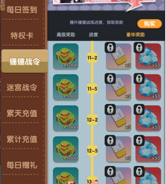 锤锤战令奖励也是非常多,氪佬可以开一开豪华奖励
