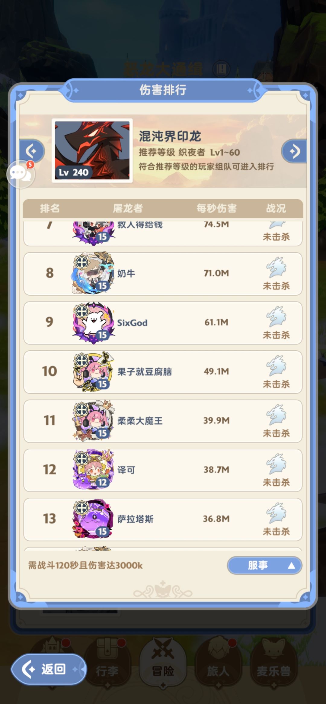 看图就行 6区龙榜都截得1m左右的输出,太直观了 五张图 从高到低排列吧 也没取顶氪 取大氪万氪可以了吧