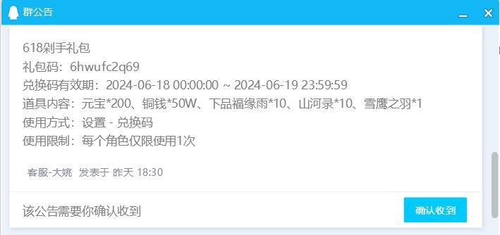 步骤三:玩家群还有其他通用礼包码,请查询群公告或者咨询客服领取。