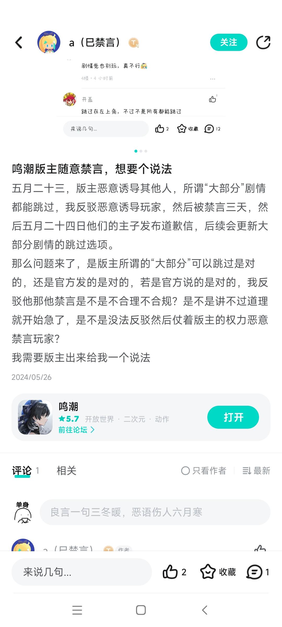 [攻略]如何得到鸣潮官方回应?指被禁言