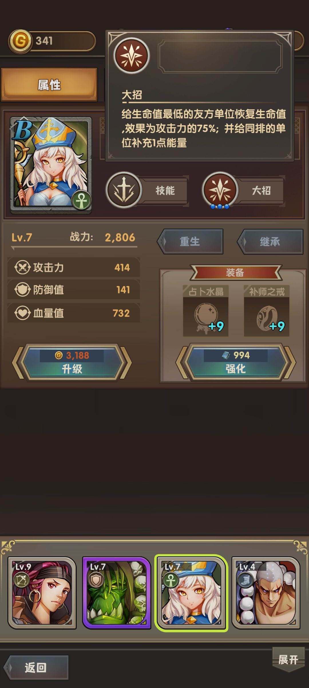 2.看看B级祈礼牧师(辅助),普攻和大招都能拉动同排回能。