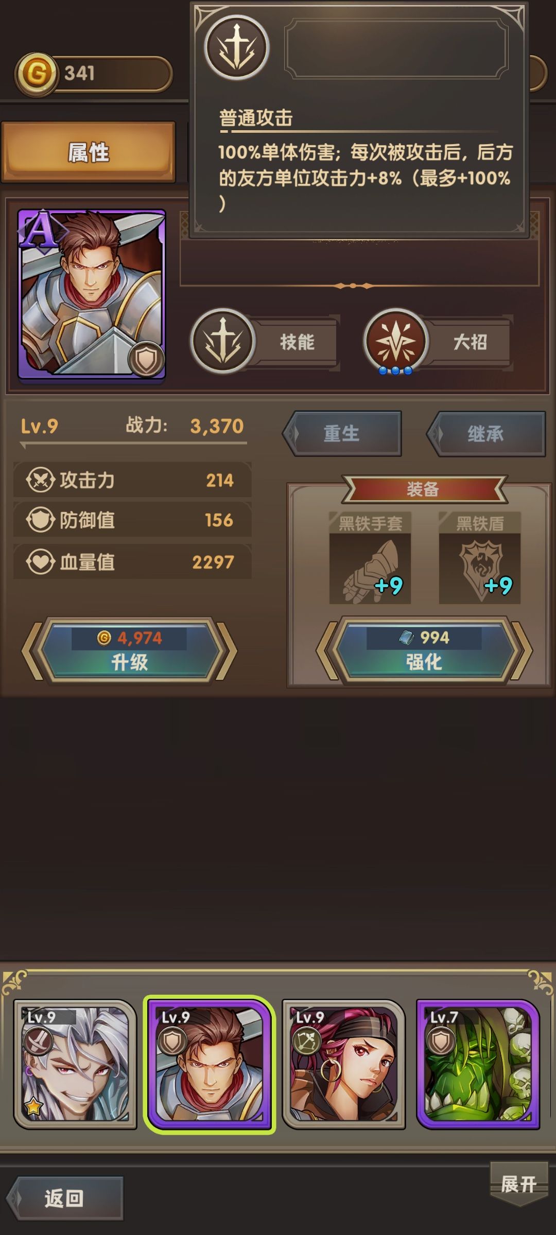 4.看看A级帝国之盾,普攻和大招都给后方叠攻击力buff。