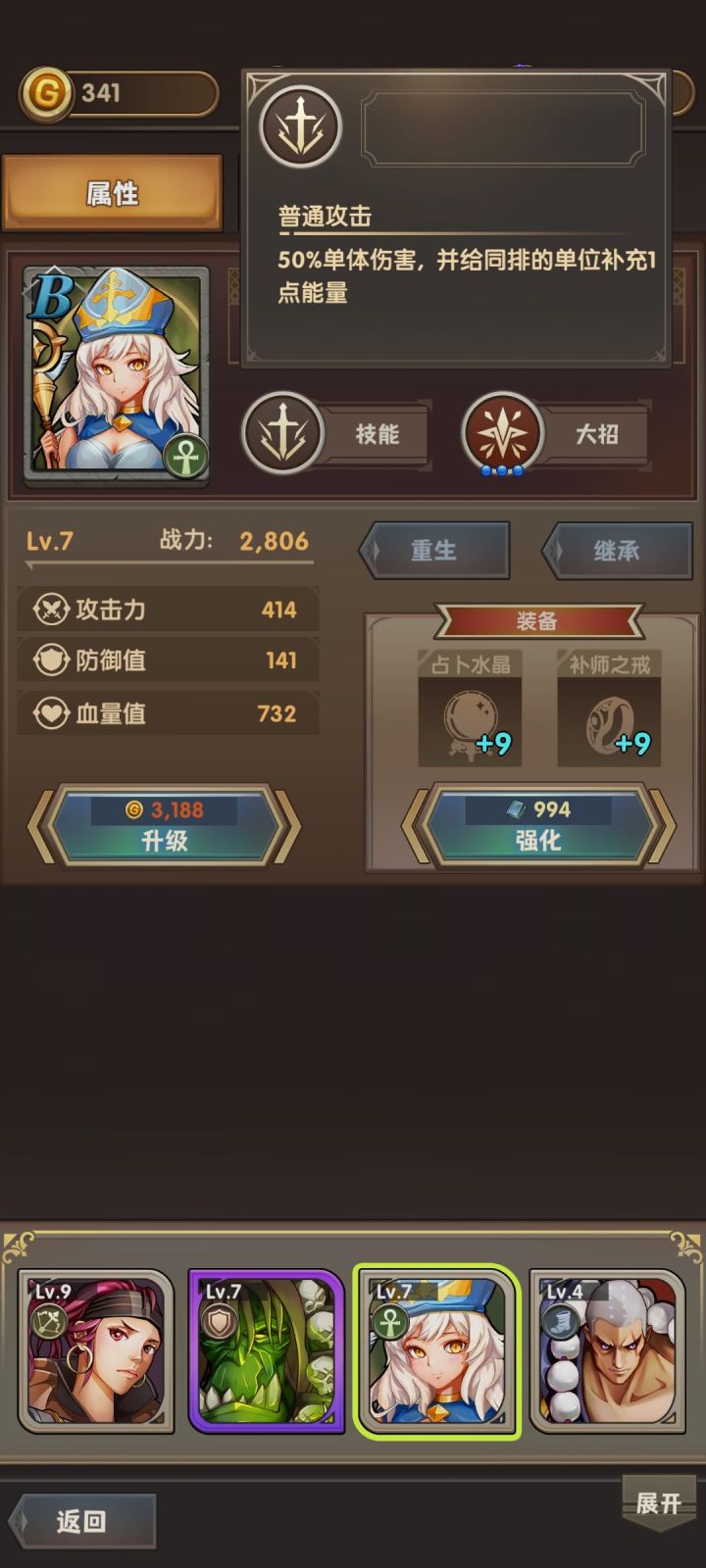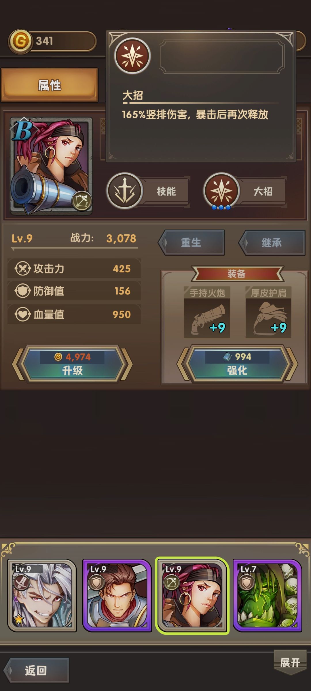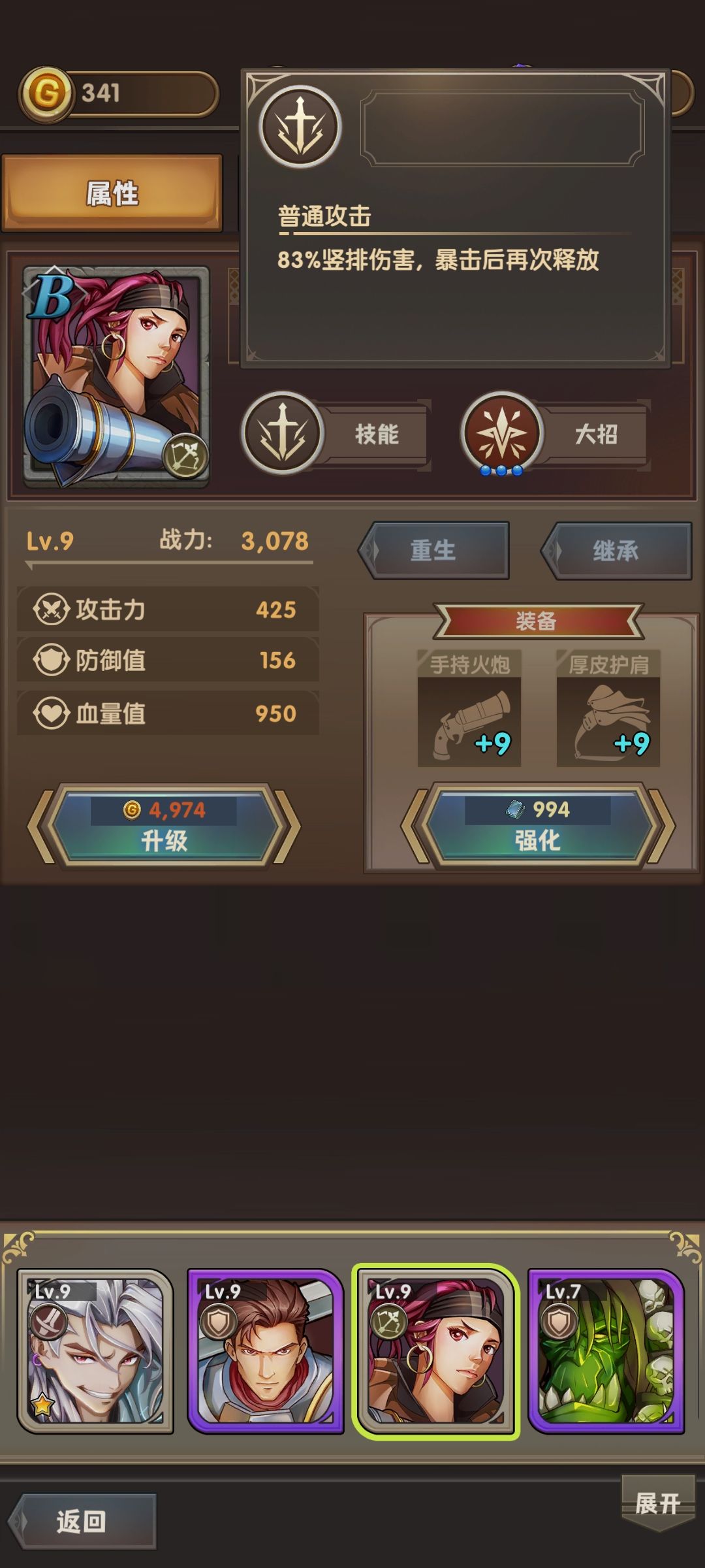 3.看看B级私掠夺女王(射手),普攻和大招都是暴击后追加攻击。