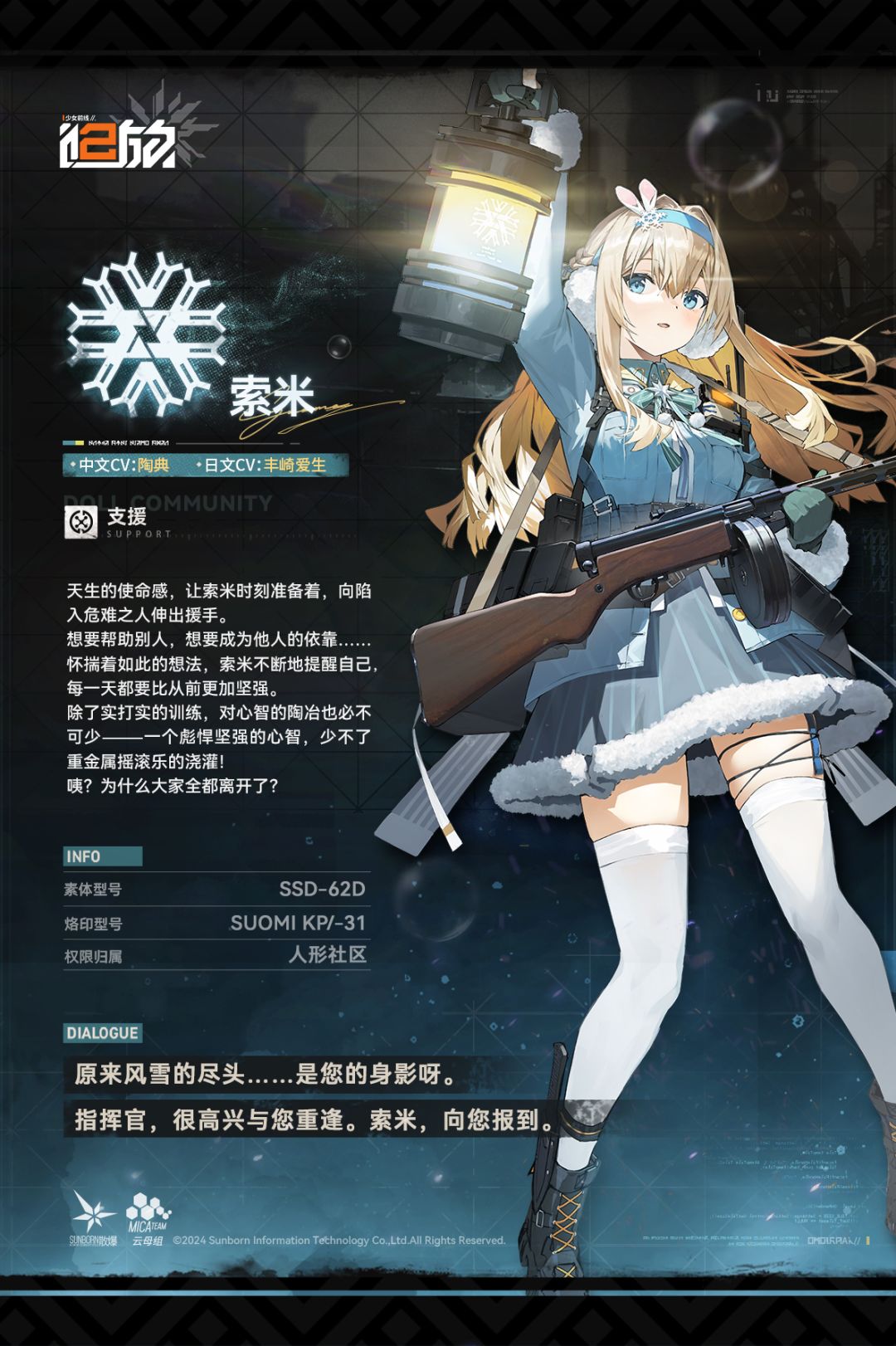 尊敬的指挥官,现在为您带来支援人形【索米】介绍!