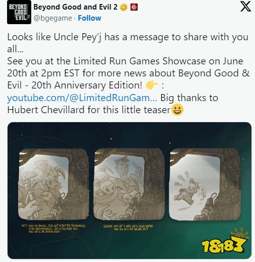 育碧透露,《超越善恶20周年纪念版》将于本周的Limited Run Games游戏展亮相,带来更多新情报。展示会将于6月21日凌晨2:00举行。