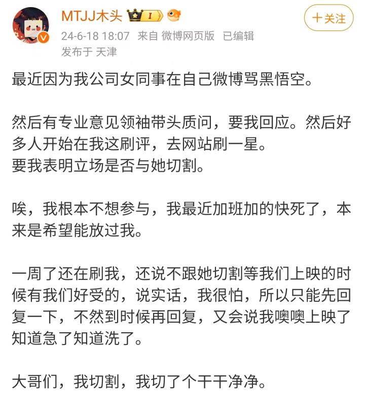 在前段时间,知名国产IP罗小黑战记公司的员工公开攻击黑神话悟空的消息曾经引起了广泛关注,而且这名员工坚持不道歉并且是为了正义。随后不少网友找到了罗小黑的作者,因为他毕竟是这名员工的老板,而在昨天,罗小黑战记的作者终于给出了回应。