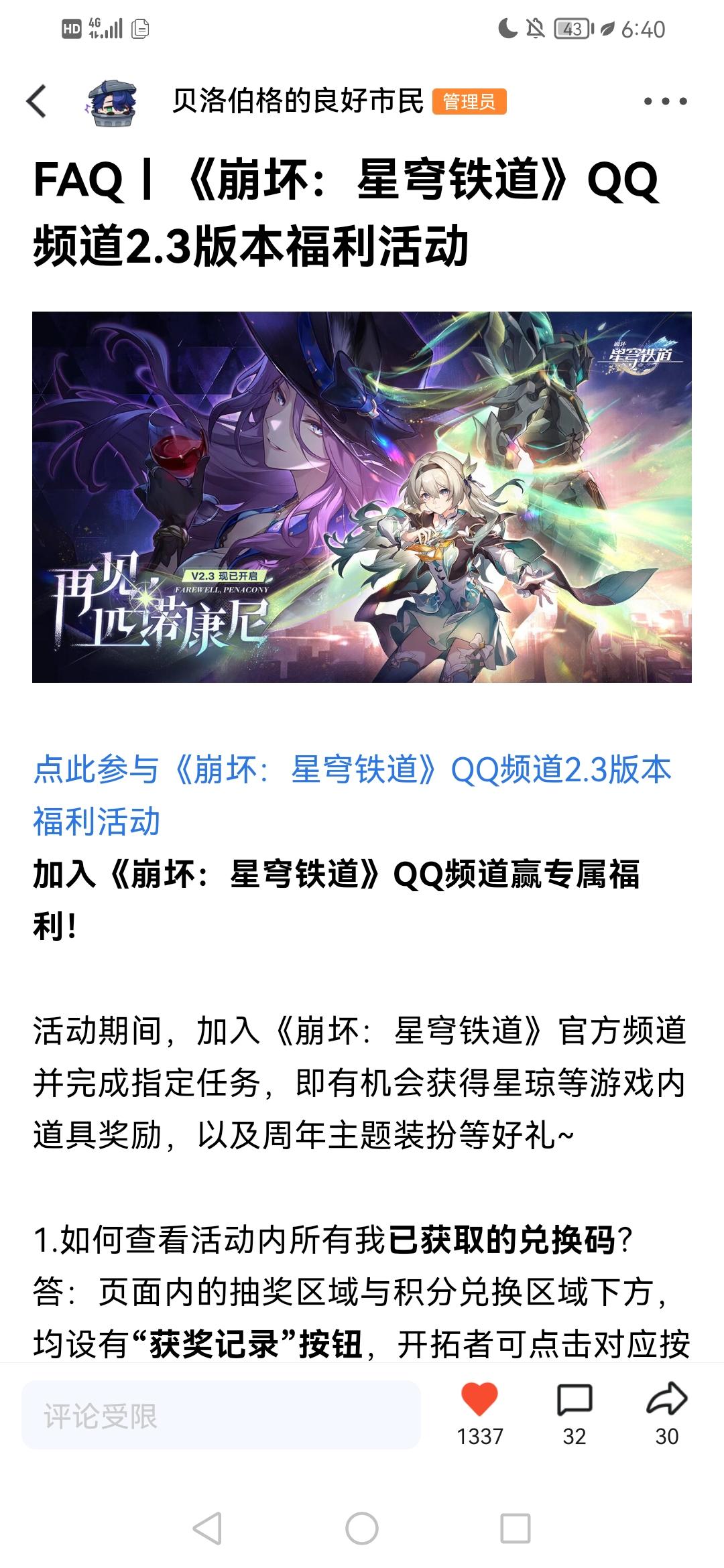 QQ搜索星弯铁道,加入频道后打开链接,就有30星琼,还可抽奖
