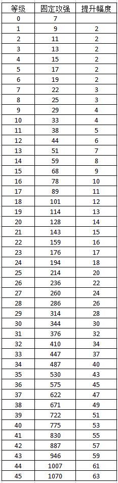 可以看得出来越后期的宝石攻强属性提升的越多,1-35级的提升幅度和36-45级的提升幅度差不多