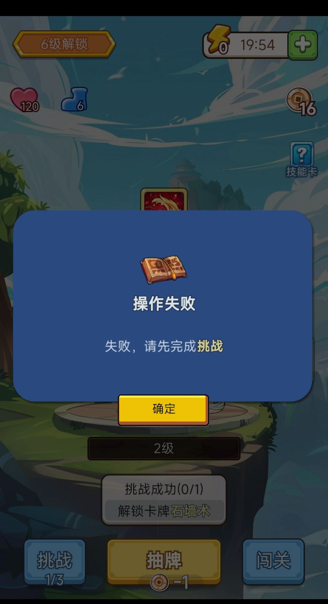 卡在新手挑战2,挑战不过去就不能合卡,而现在的卡又打不了新手挑战2,每次攻击20点,破不了对面的盾,永远过不去了