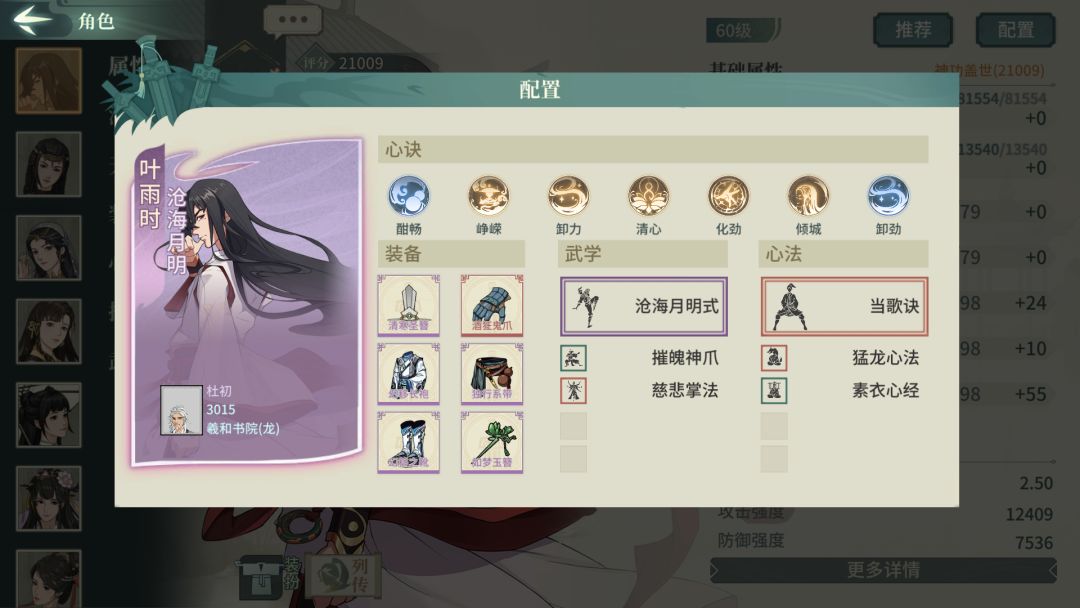 配置细节:通玄细节同上;双羽佩可以让桃花被暴击时生存能力更强,同时负面穿透可以加强4技能的控制效果,关键时刻的诸般封印有奇效;侠隐进一步补足生存;疾风剑2.5(潜能点到23级赌双方女角色够多也可)