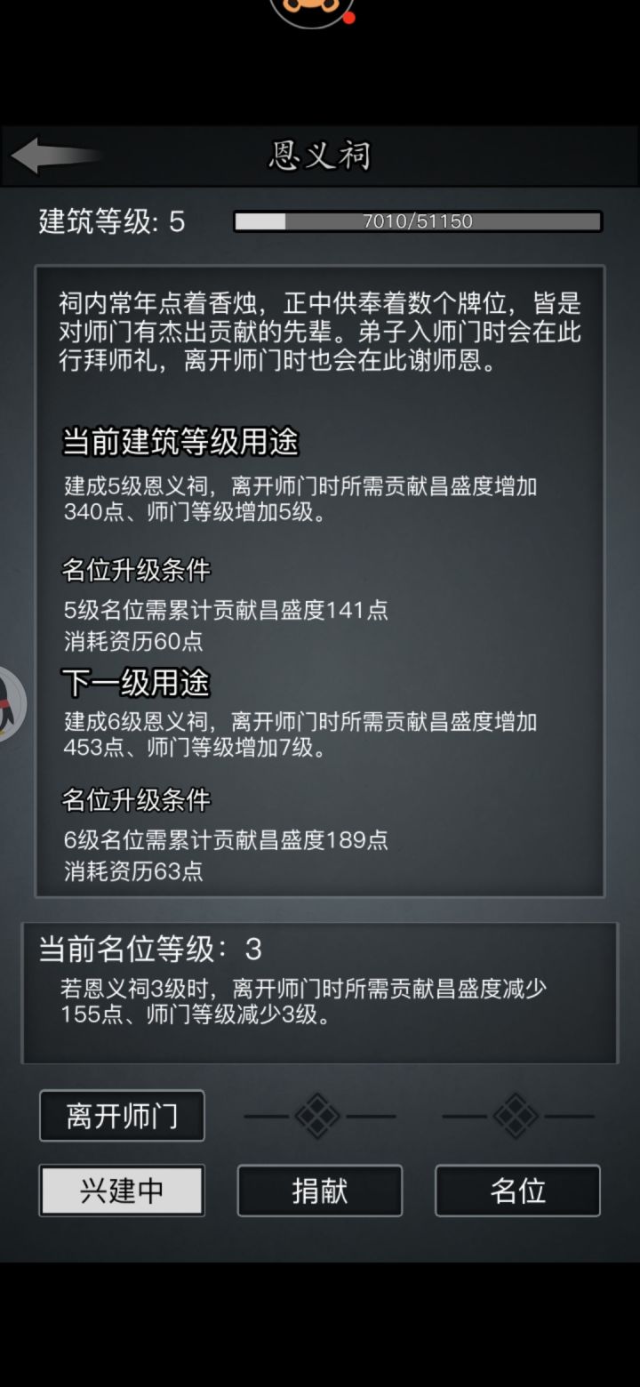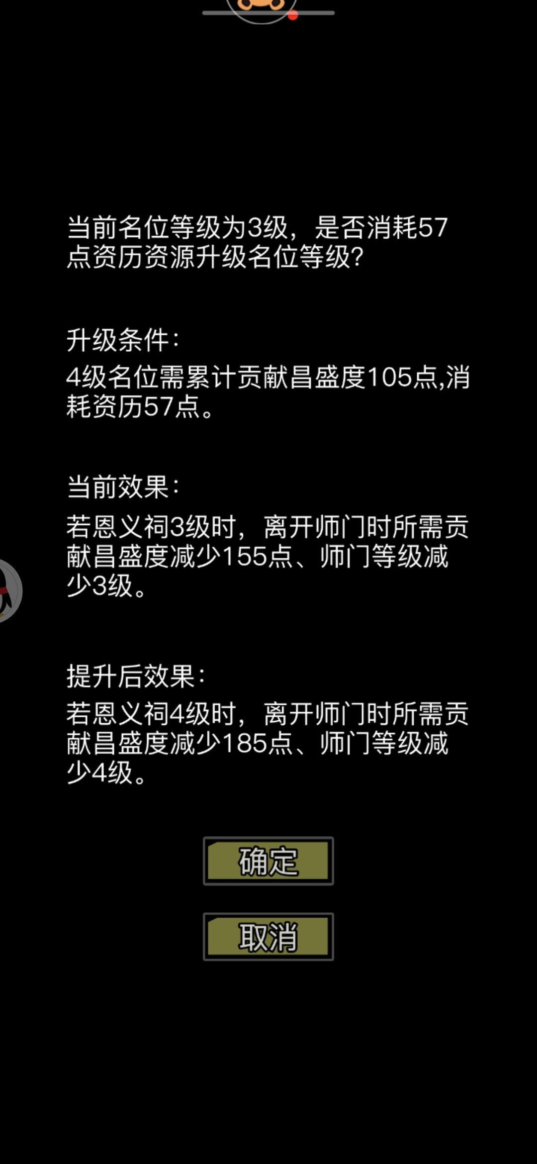 注:师门等级完全不用看,恩义名位提升到对应等级,师门等级需求为1级。