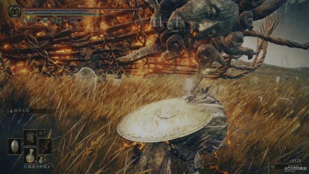 同样的,DLC中有新的“世界Boss”一样的存在——「熔炉魔像」(火焰柳条人),其实就是本篇中「黄金树化身」的一种升级,与打败「黄金树化身」相同的是,打败柳条人后可以获得DLC中新的「露滴」用于玩家的「灵药圣杯瓶」。