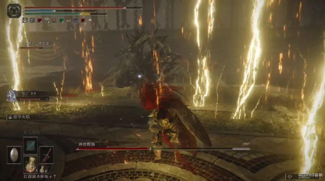 比如上面提到的「“塔之镇”贝瑞特」的守关Boss「神兽舞狮」,不仅能驾驭冰属性和风属性的元素攻击,还能释放大范围的闪电攻击,并在这几种元素攻击中随机进行切换。当我看着它凭空高高跳起以凌厉之势向我投掷闪电,我他喵差点也跳起来接一个“雷电奉还”,当然结果是我直接被按在地上抽搐不已……