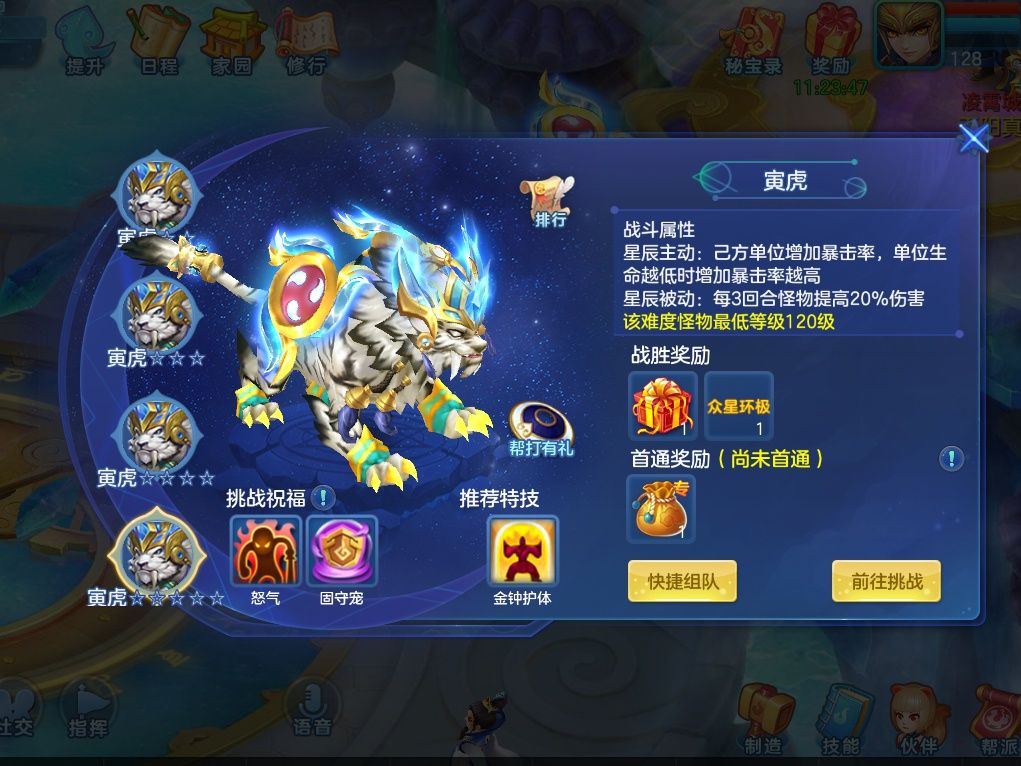 1、星辰下凡:服务器等级≥115时,新增星辰下凡5星难度。首次通关各个类型的星辰5挑战,可以获得相应职业的飞升110级装备灵,战胜服务器最高星级难度还可获得限时称谓,解锁对应成就。