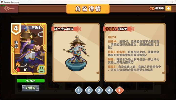 点评:身材普通,属功能性武将,能配合刘备军(刘备,马超,诸葛亮)回血buff,还能克制法师的石化等异常状态,遇到自己残血的时候还能锁血(说的就是你人机猫猫),小亡五级后必带的将士。爬塔能帮助主公在45层周瑜关及95层吕布关锁血。