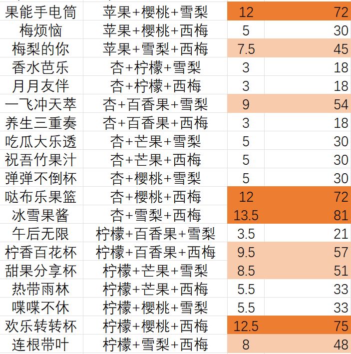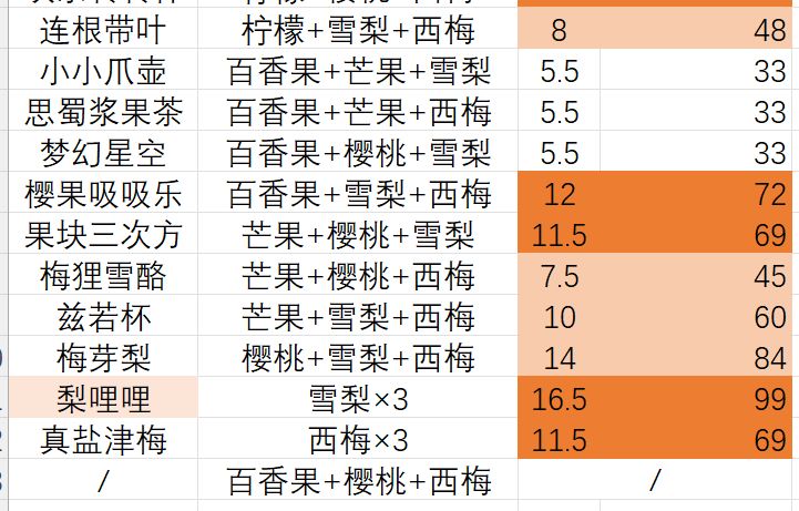 总结数据,利润前三排序:一口梅>梅力觉醒>梨哩哩。其他果汁可按照餐厅要求制作。