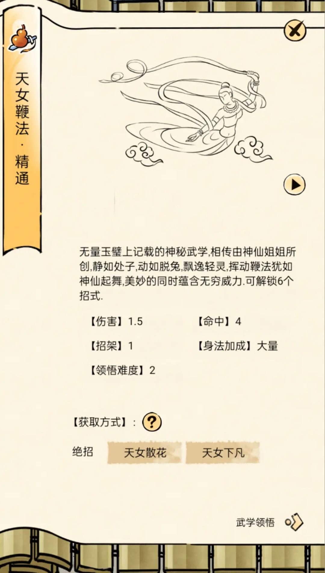 天女鞭法领悟面板
