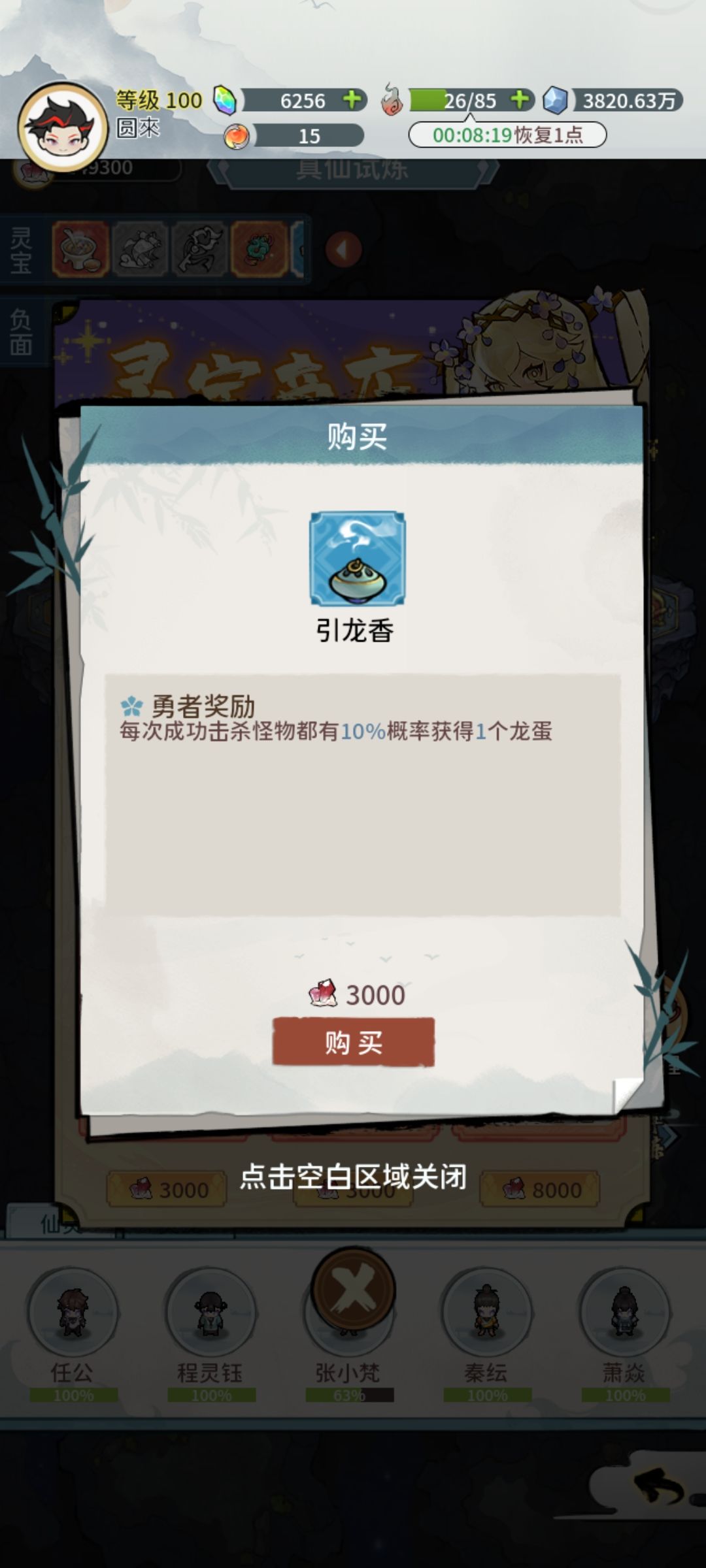 打6次怪出灵宝商店,可刷新出伙伴金奖券,伙伴商店折扣,斩龙剑,引龙香,袋子