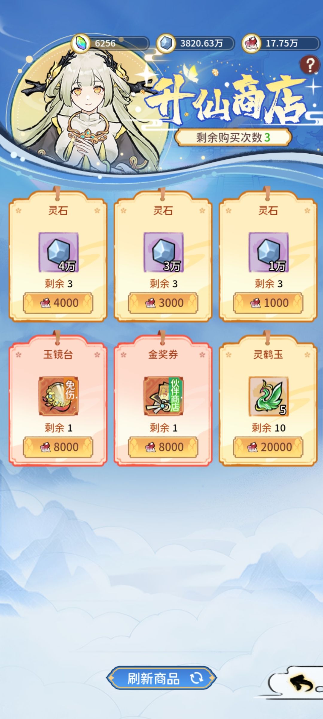 伙伴商店首次进入刷新免费,玫瑰灵宝商店,升仙商店都有出