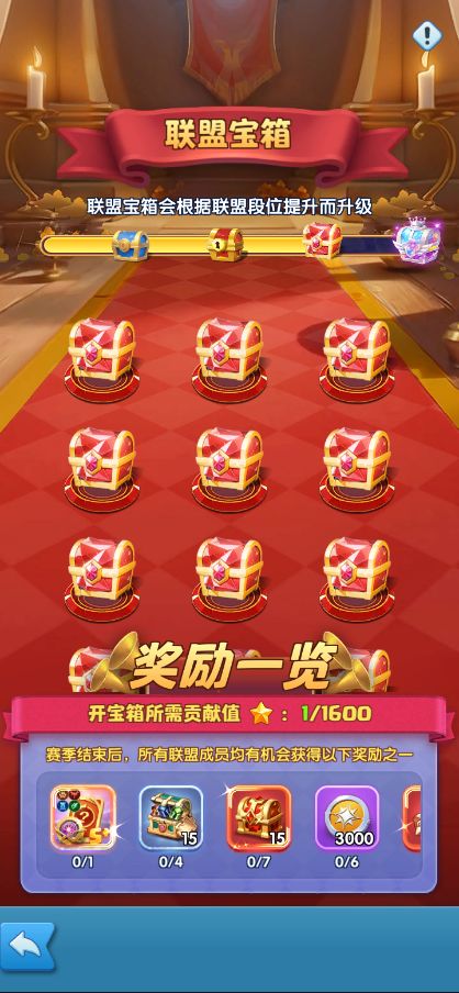 联盟宝箱共计30个,宝箱的品质会随着联盟段位的提升而提升,奖励内容也会随之提升。