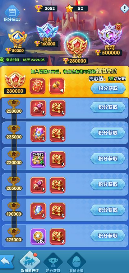 联盟成员可以通过参与各类玩法来获得联盟积分,用于提升通行证等级与联盟段位,通行证等级的提升均可获得丰厚奖励。(阿哲提醒:联盟段位的提升还可获得更为丰厚的段位大奖! )