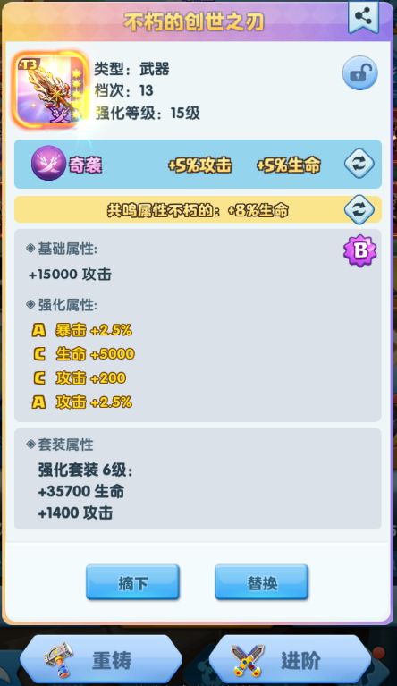 1、旅行者们可打开任意一件T3装备的详情界面,点击进阶职业后的【重铸】按钮,即可进入T3装备进阶职业的重置界面。(阿哲提醒:旅行者们需要获得过魔能精粹才可以看到该入口哦~)