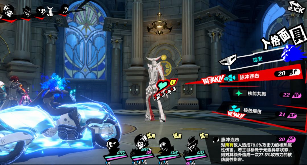 在启示卡方面,推荐觉知+真谛,主词条建议以伤害+爆伤+攻击,因为新岛真需要先叠坚毅才能打出成倍伤害,因此速度这块不建议新岛真先手;人格面具这里推荐沙门天、酒神和主天使,能更好的发挥新岛真的核爆效果,打出最优伤害。