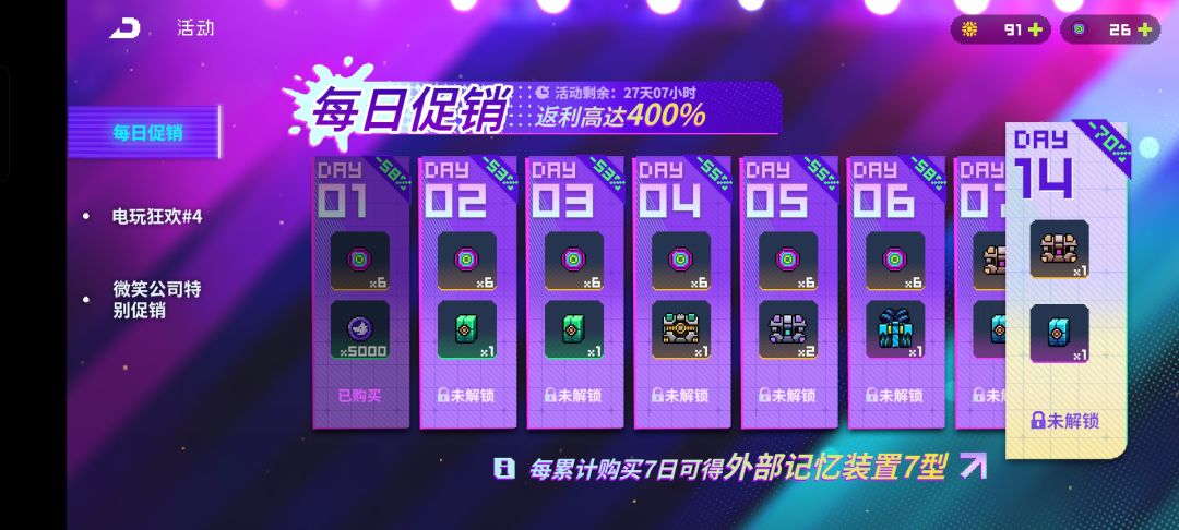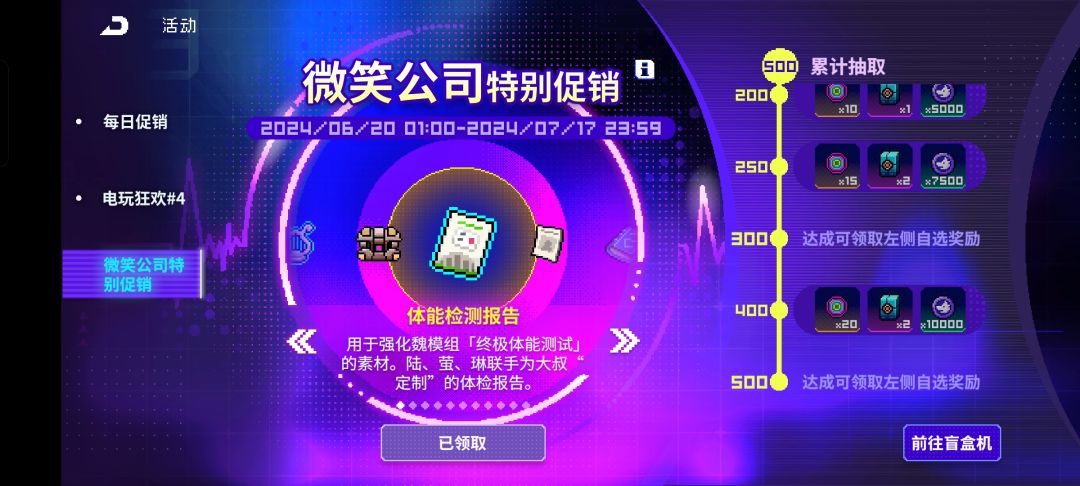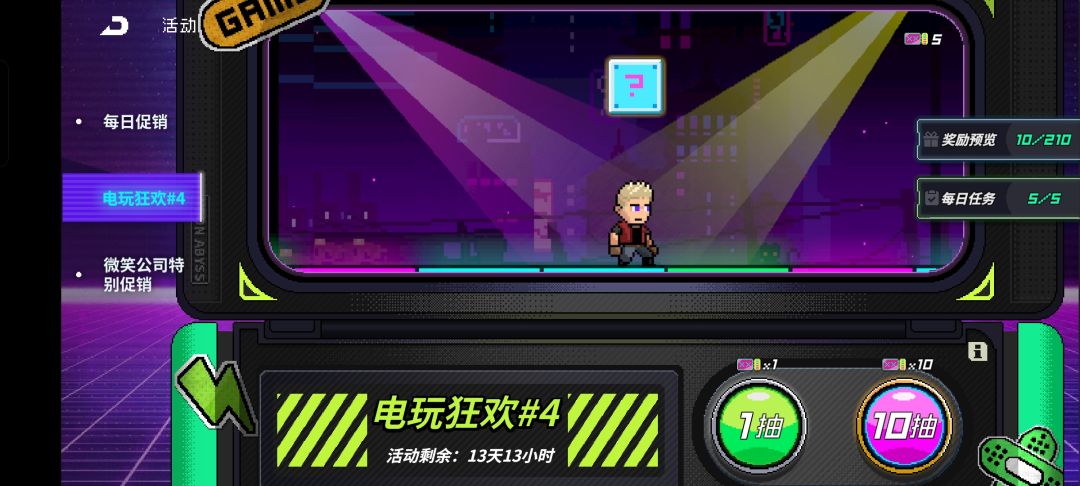 每日任务完成获得十五卷,一共能获得5个月亮币,10个霓虹币和一堆材料(老三样了
