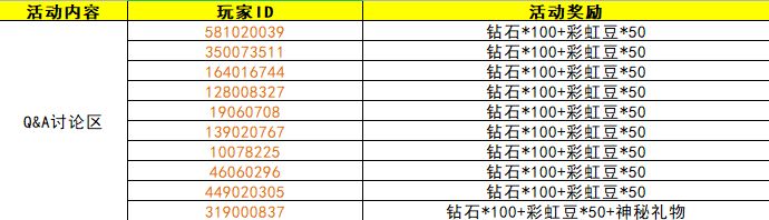 恭喜以下召唤师获得本次活动奖励,特别祝贺ID:319000837获得神秘礼品~