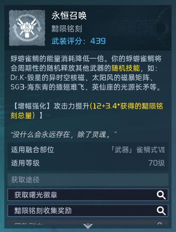 作为核心的融合材料,每种武器均有一个对应的「黯陨铭刻」,能为武器带来不同的效果加成!各位幸存者可通过团队副本等途径获取黯陨铭刻。