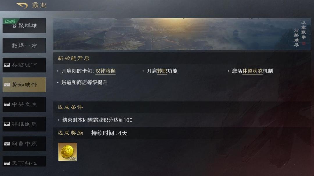 当霸业来到“势如破竹”阶段,转职功能将会开启,转职需消耗木材、铁矿、石料、粮食若干。转职功能开启后,转职消耗会随着天数以及职业不同所增加。