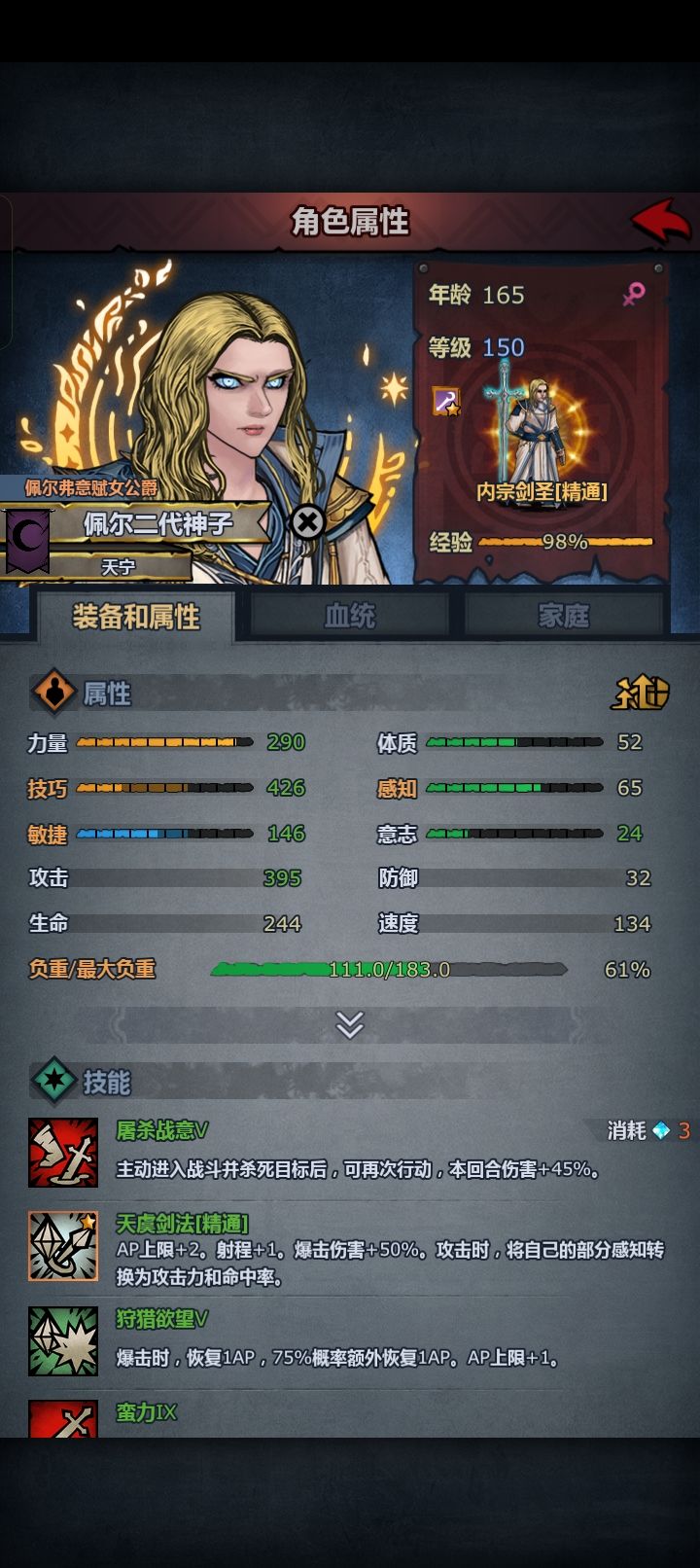 8.然后信赖直到尊敬塞宁,目前技巧较为重要,太阳成为佩尔和希尔混血的必备特性,但是由于佩尔和希尔这两个神子卷身用处不大,只能日常。并且赛宁结婚较贵,所以优先度有所降低,但是因为有庄园,所以结婚贵问题不是很大,再加上颜值好看也可以混血。