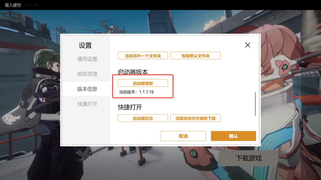 A:重新启动启动器后,直接进入设置界面,点击版本信息->启动器更新按钮(操作前退出杀毒软件)