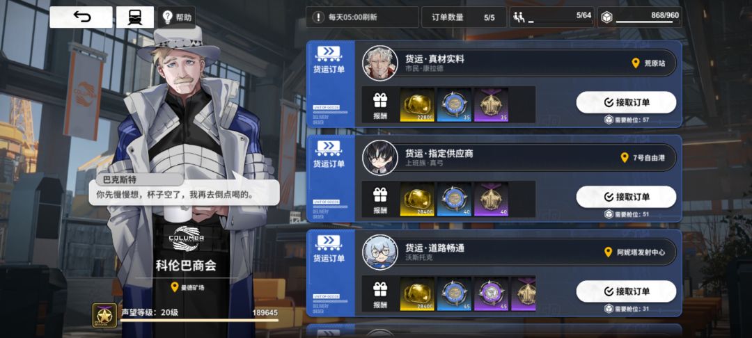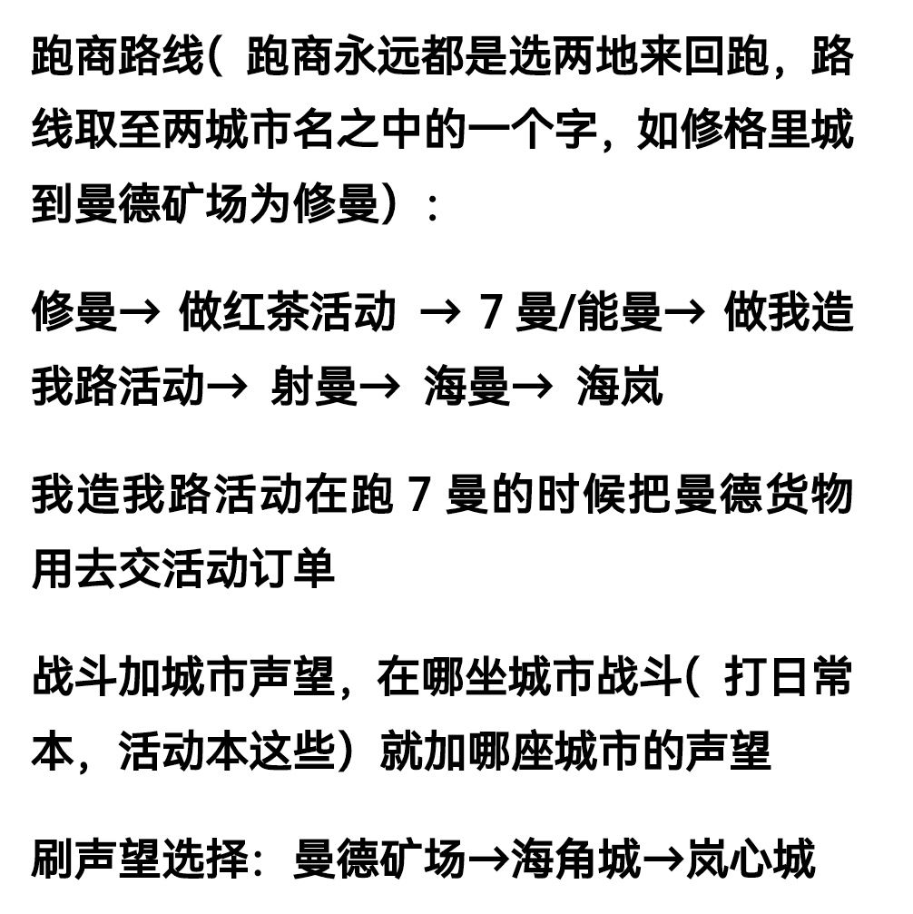 科伦巴没学会之前先跳过,看后面,然后投资,投资结束后做红茶活动,红茶活动结束后无脑7号自由港和曼德矿场来回倒