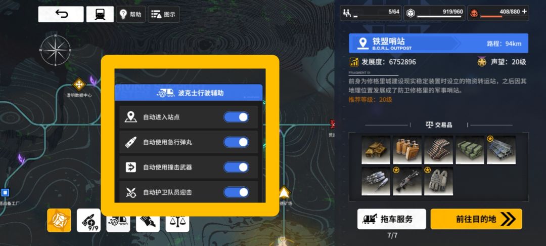 有钱后买波克士行驶辅助(也是要钱的),买完后就可以挂机跑商了