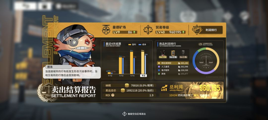 44级萌新跑商一天赚3900万,霸榜60级榜单