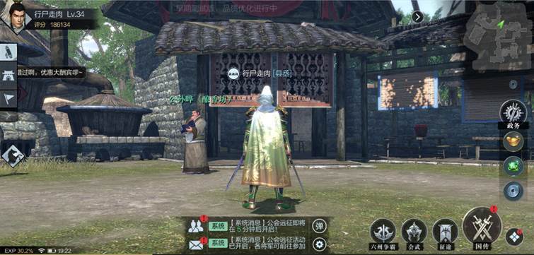 前期属地建设主要可以建造酒坊、兵法铺、工坊、马厩、校场、巡防营和铁匠铺,每个建筑物都可以进行升级升阶,进阶之后建筑外表会发生改变,获得新形象,越高阶的建筑外表越豪华,当然高阶建筑也能带来更多好处和收益。