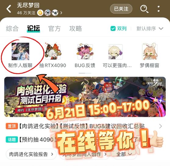 关于《无尽梦回》、关于「肉鸽进化实验」测试,如果你有任何疑问、建议或不吐不快的想法,诚邀你来《无尽梦回》TapTap官方论坛置顶活动帖和我进行实时版聊!