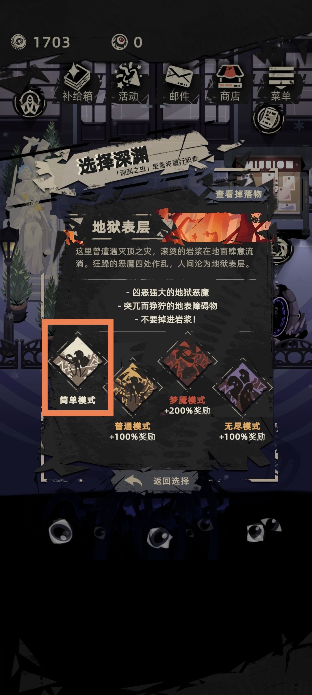 首先我们进入游戏选择地狱表层。