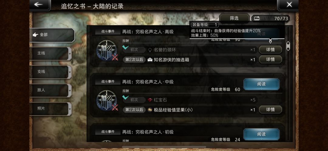 3.刷支线故事,地图上每个点,点击后都会有提示有多少旅人多少待完成任务,利用这个信息,可速刷支线~指找四五个同时存在的点统一跳过剧情,规律是~按城区~野外~城区。故而集中跑完城区他们就会再次集中在野外了同理~。跨城区的支线任务比较少。剧情党跳过此条,也可刷完在去统一回顾。